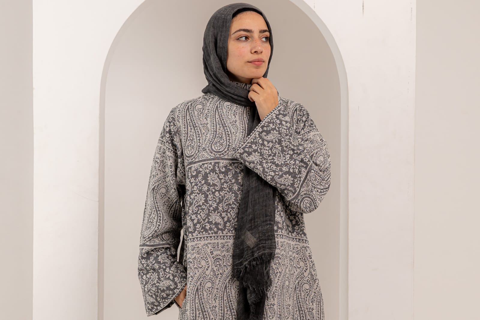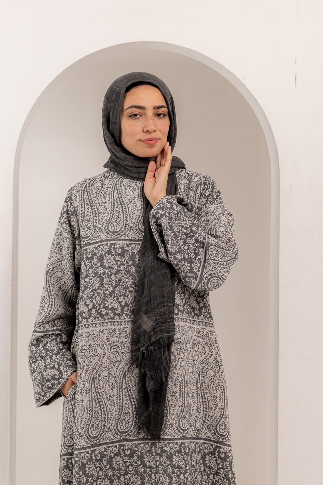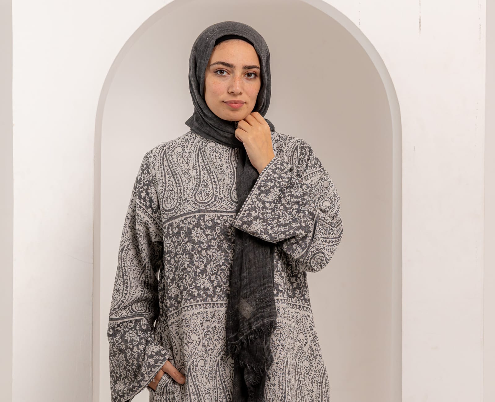 Designed with a loose, comfortable fit that’s perfect for modest wear, featuring practical side pockets for convenience and style.