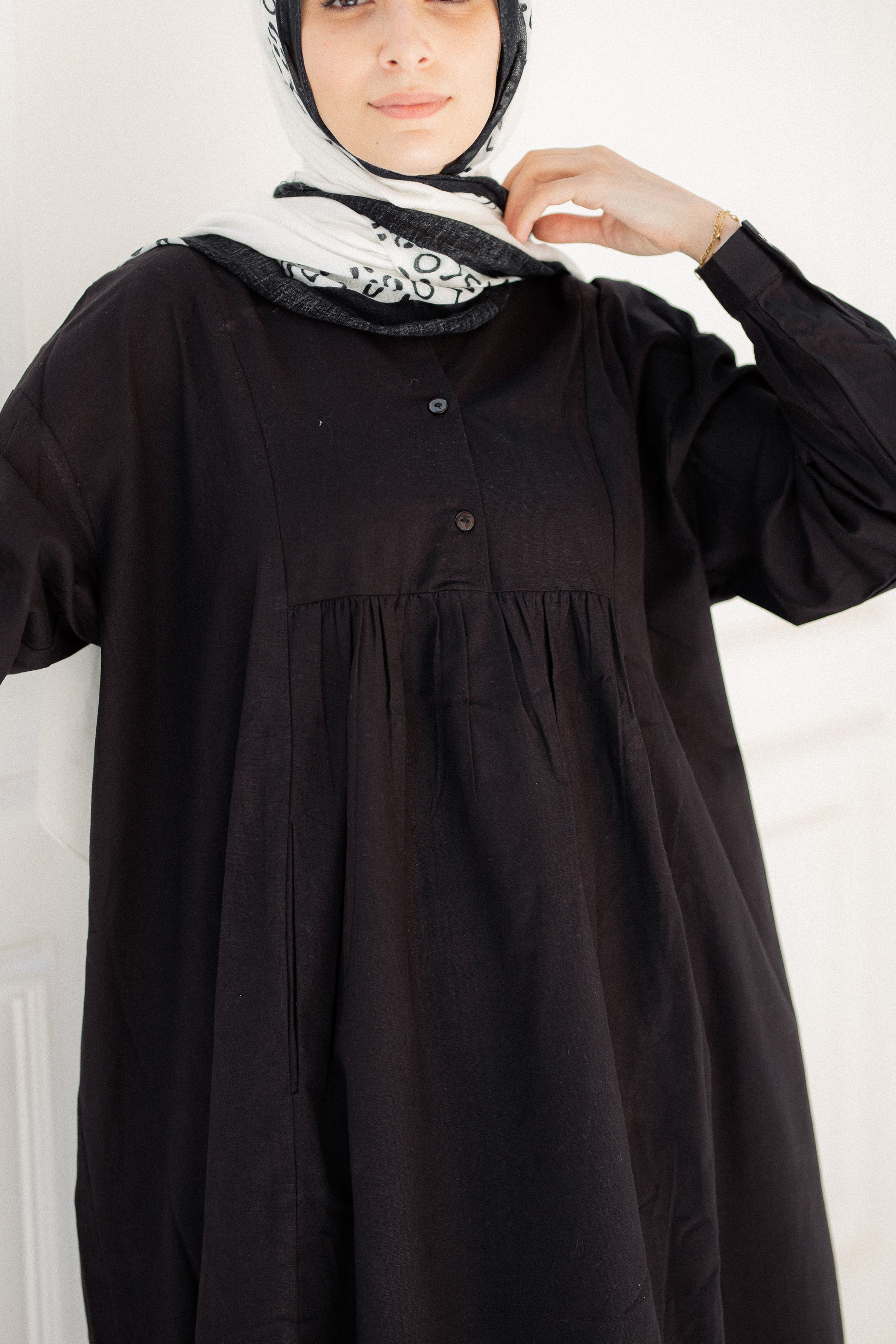 Tailored from high-quality cotton linen, the Ruffled Dress combines elegance with everyday practicality. Designed with front pockets and button details on the chest and sleeves, it is elevated by delicate ruffles across the chest and a wide frilled hemline that enhances its feminine charm. A chic piece that blends style and functionality with ease.