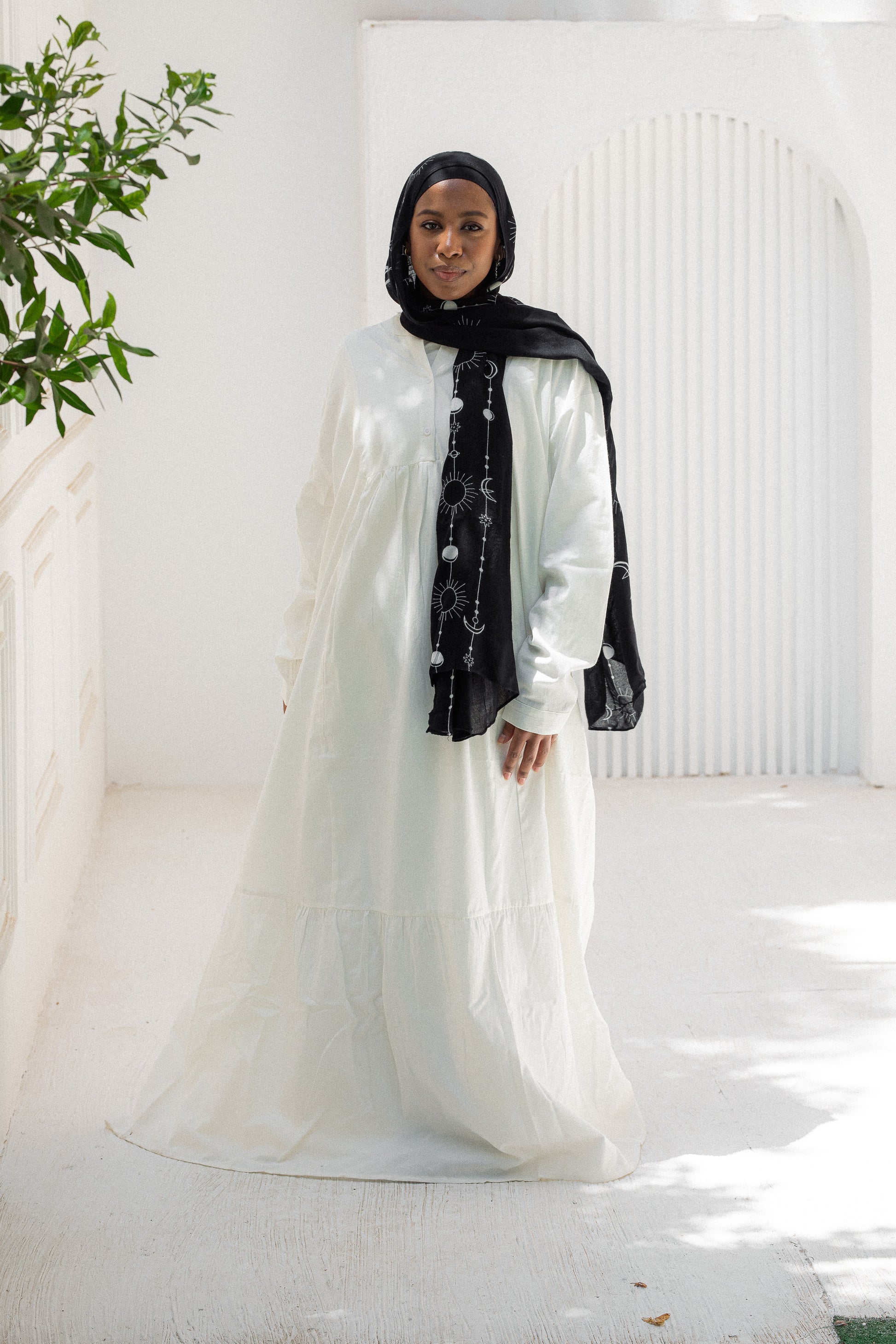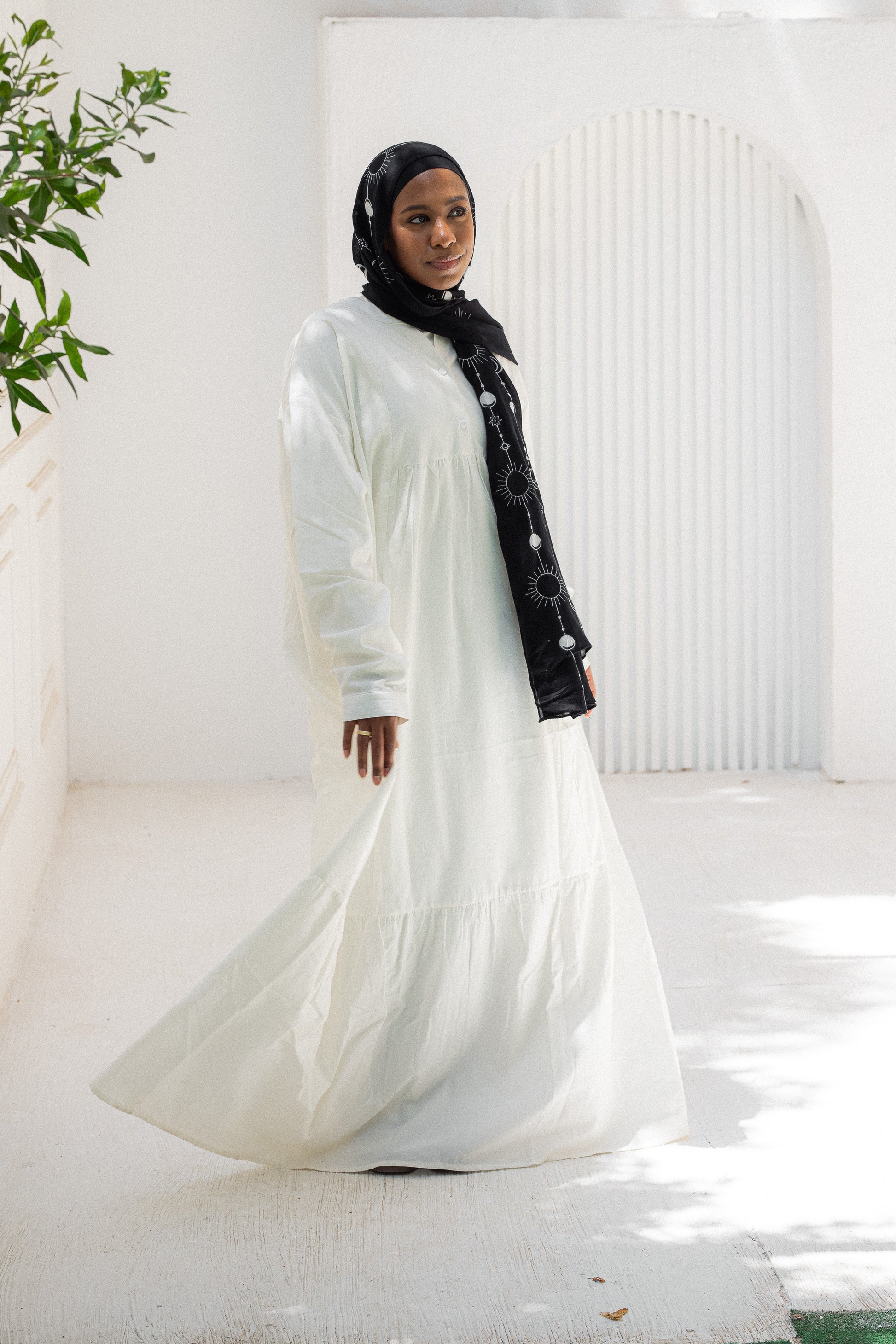Tailored from high-quality cotton linen, the Ruffled Dress combines elegance with everyday practicality. Designed with front pockets and button details on the chest and sleeves, it is elevated by delicate ruffles across the chest and a wide frilled hemline that enhances its feminine charm. A chic piece that blends style and functionality with ease.