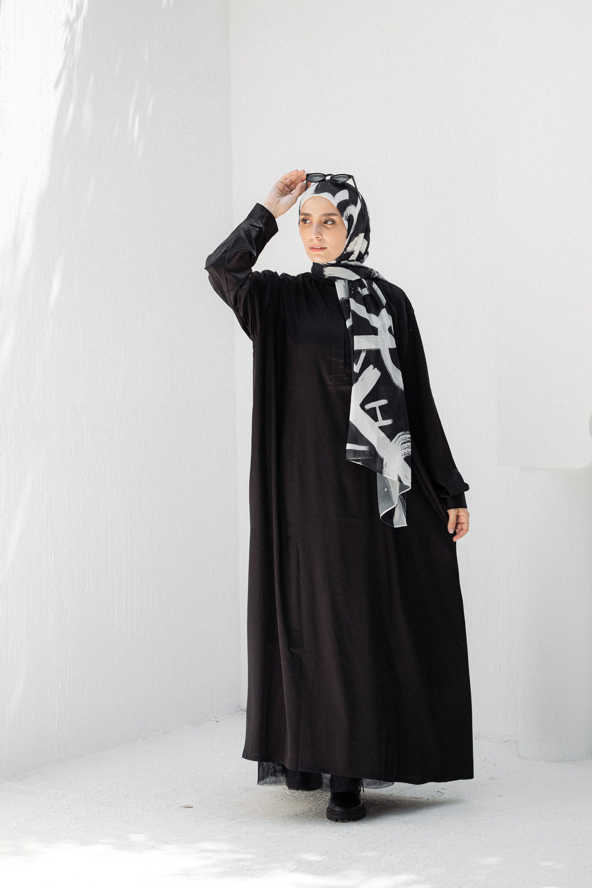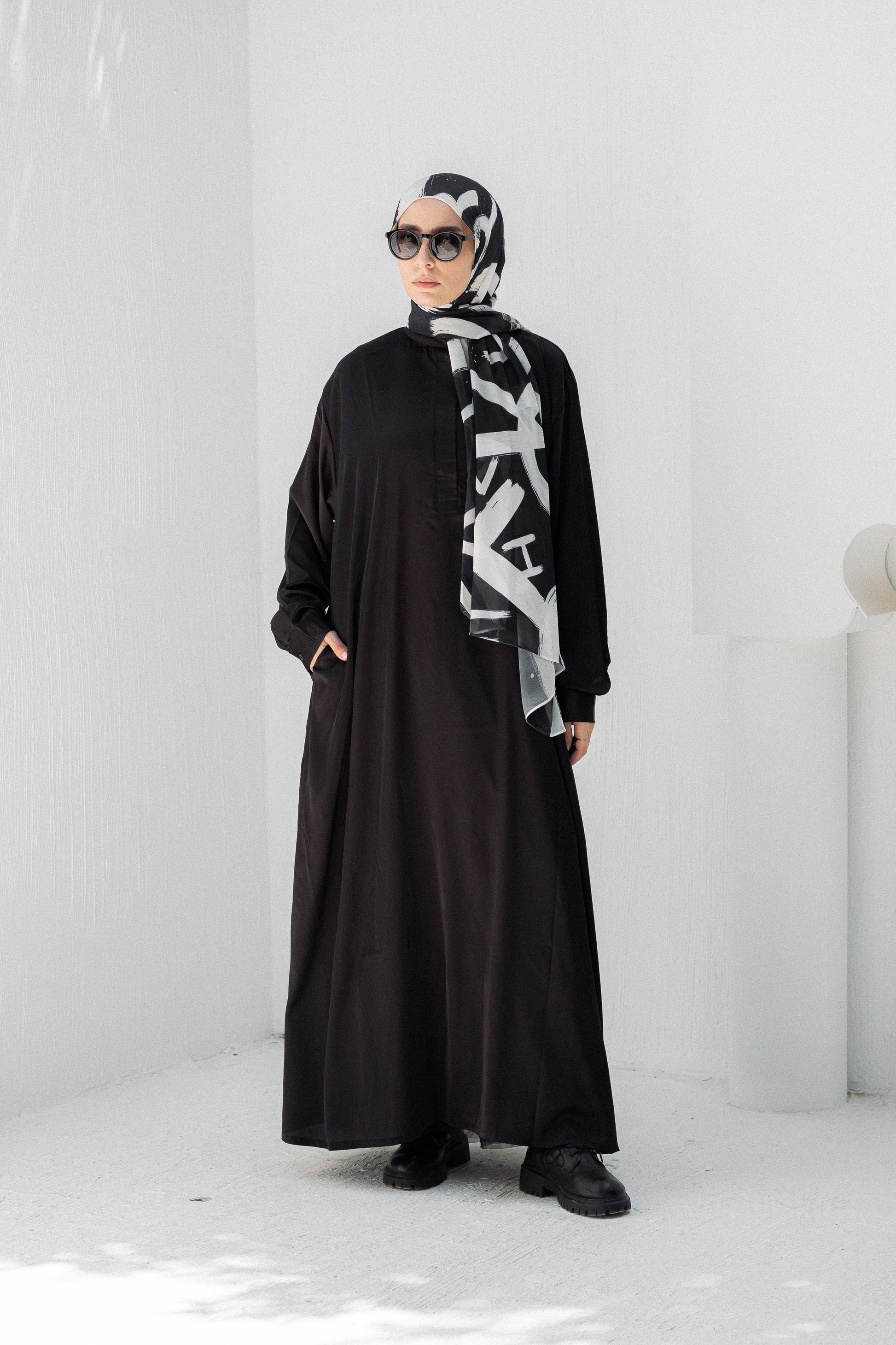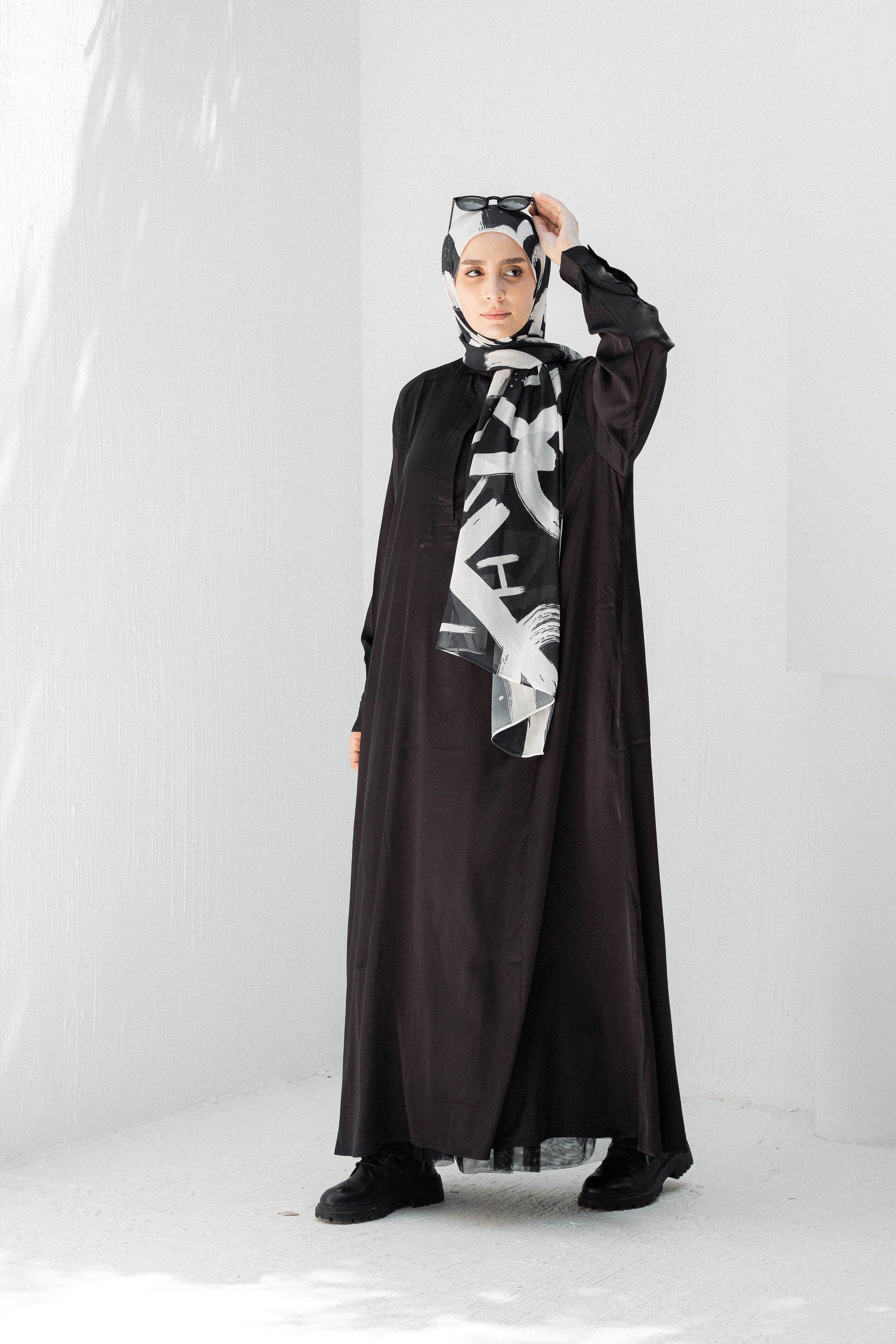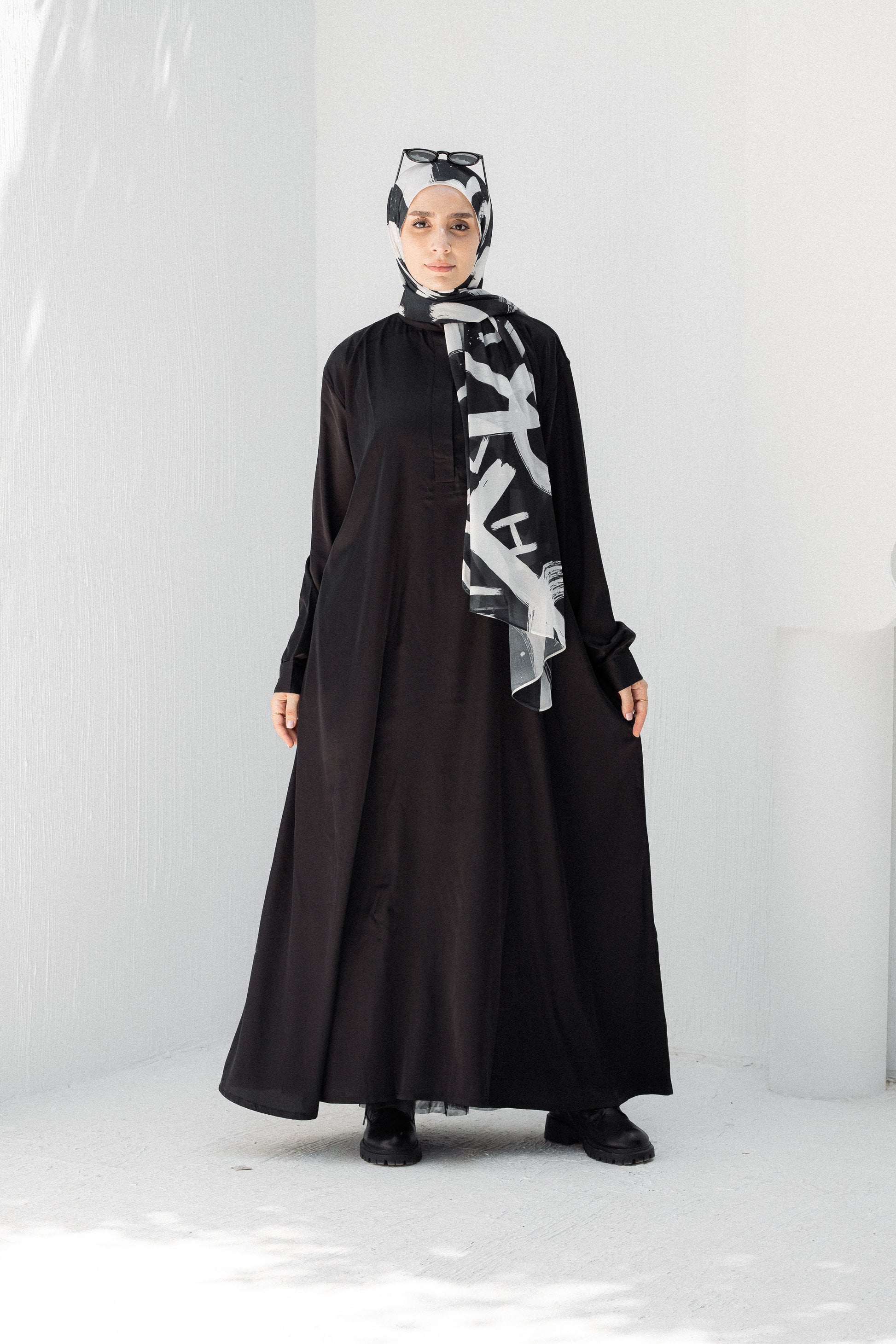 A flowy design made from satin lycra fabric, offering a soft and elegant look. Detailed with front buttons, practical side pockets, and cuffed sleeves for a refined touch of style and comfort. An ideal choice for a graceful appearance that suits various occasions.